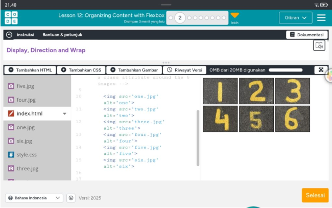 Lanjut ke nomor 3 di sini kita d perintahkan untuk menambahkan properti justify conten ke setiap 6 kontainer div di stylesheet